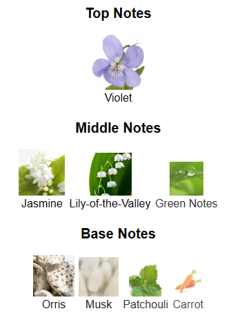 Middle notes are Jasmine, Lily-of-the-Valley and Green Notes