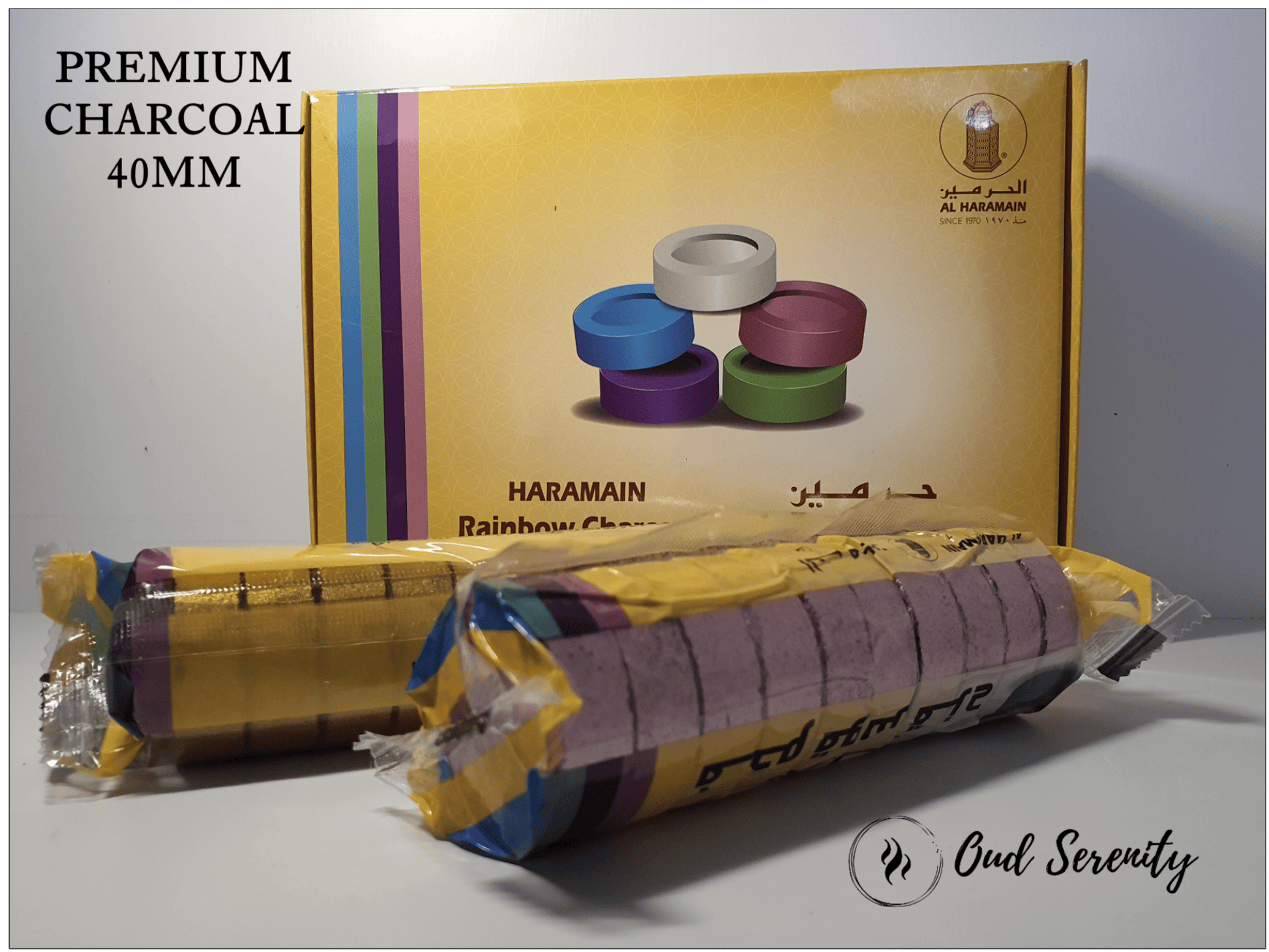 These 40mm UAE-manufactured rainbow charcoals are an excellent pick - premium quality, incredibly fast self-lighting.