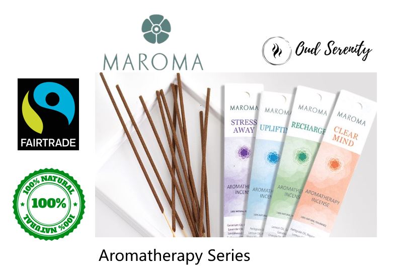 Maroma's Aromatherapy incense sticks are crafted through precise blending of 100% natural essential oil. Through the balance and interplay of scents, the resulting product comes alive and exude aroma that brings out multi layers of positive attributes to evoke the emotion and mood of your surroundings.