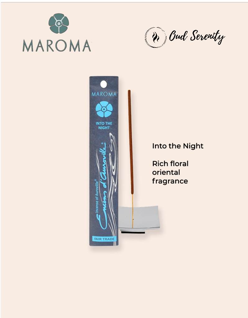 Maroma Encens – Into the Night is a rich, floral-oriental incense blend designed to evoke mystery, depth, and quiet elegance. It’s handcrafted using natural ingredients and essential oils, offering a sensory experience that’s both grounding and ethereal.