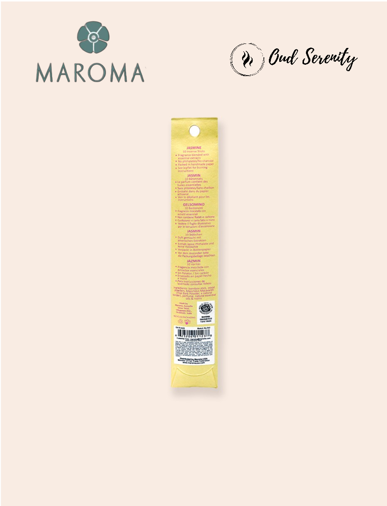Maroma Encens – Jasmine is a poetic, floral incense blend that captures the timeless elegance of jasmine in its purest form. This handcrafted incense is made with natural ingredients and essential oils, offering a serene, exotic and rejuvenating aromatic experience.