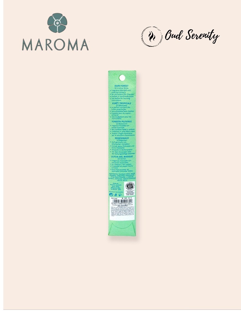 Maroma Encens – Rainforest is a lush, invigorating incense blend that captures the essence of a thriving tropical forest. It’s handcrafted in India using natural ingredients and essential oils, designed to evoke vitality, freshness, and a deep connection to nature.