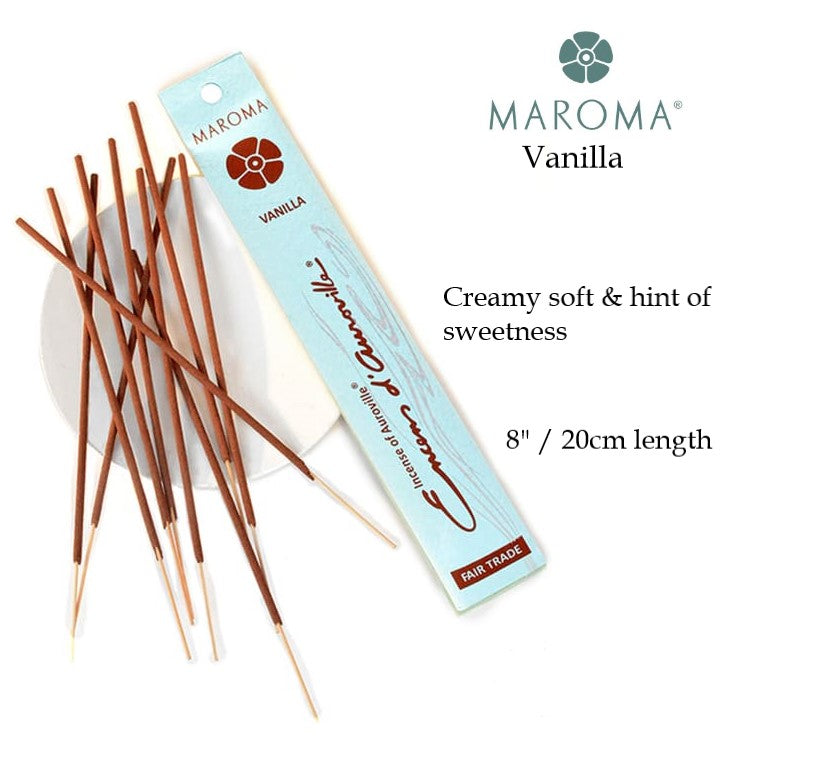 Maroma Encens – Vanilla is a warm, comforting incense blend that wraps your space in creamy sweetness and gentle spice. Part of the Encens d’Auroville collection, it’s handcrafted to evoke a sense of fulfillment and renewal.