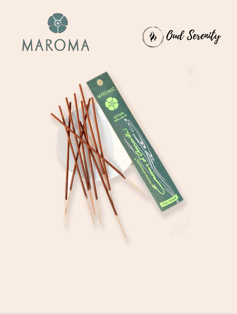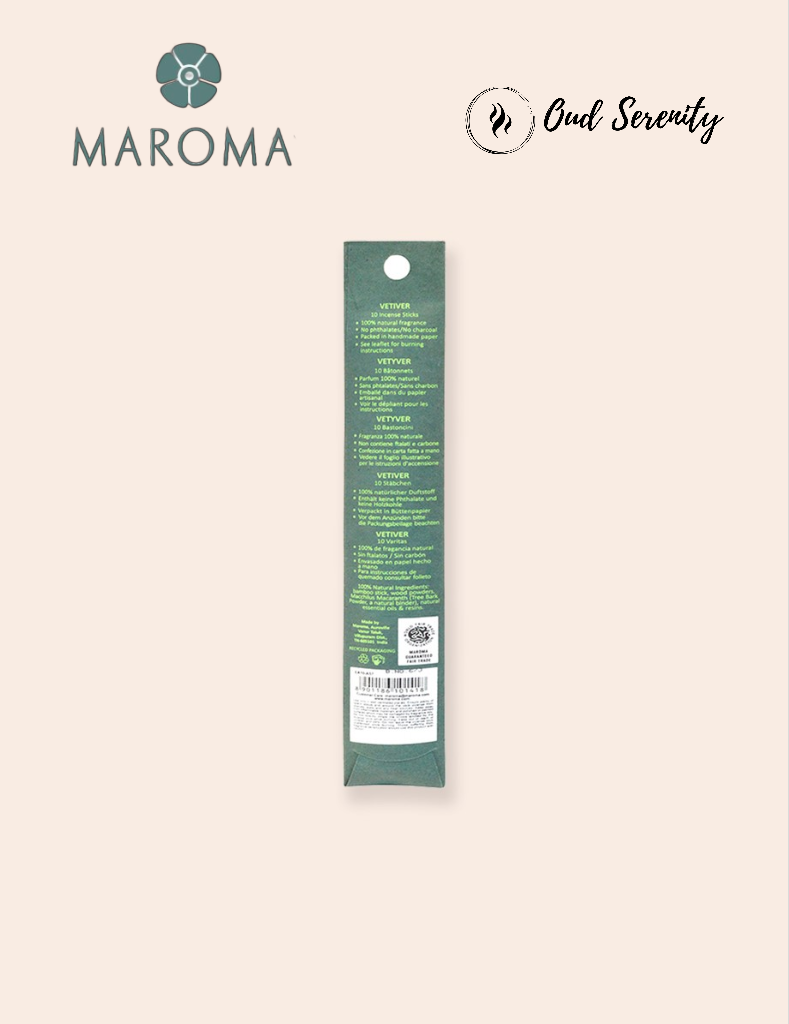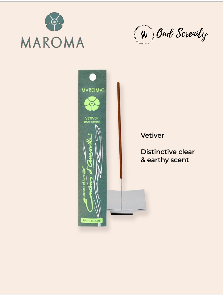 Maroma Encens – Vetiver is a grounding, earthy incense blend from the brand’s signature Encens d’Auroville collection—crafted to cool, quiet, and harmonize your space. It’s a celebration of natural simplicity, rooted in artisan tradition and botanical purity.